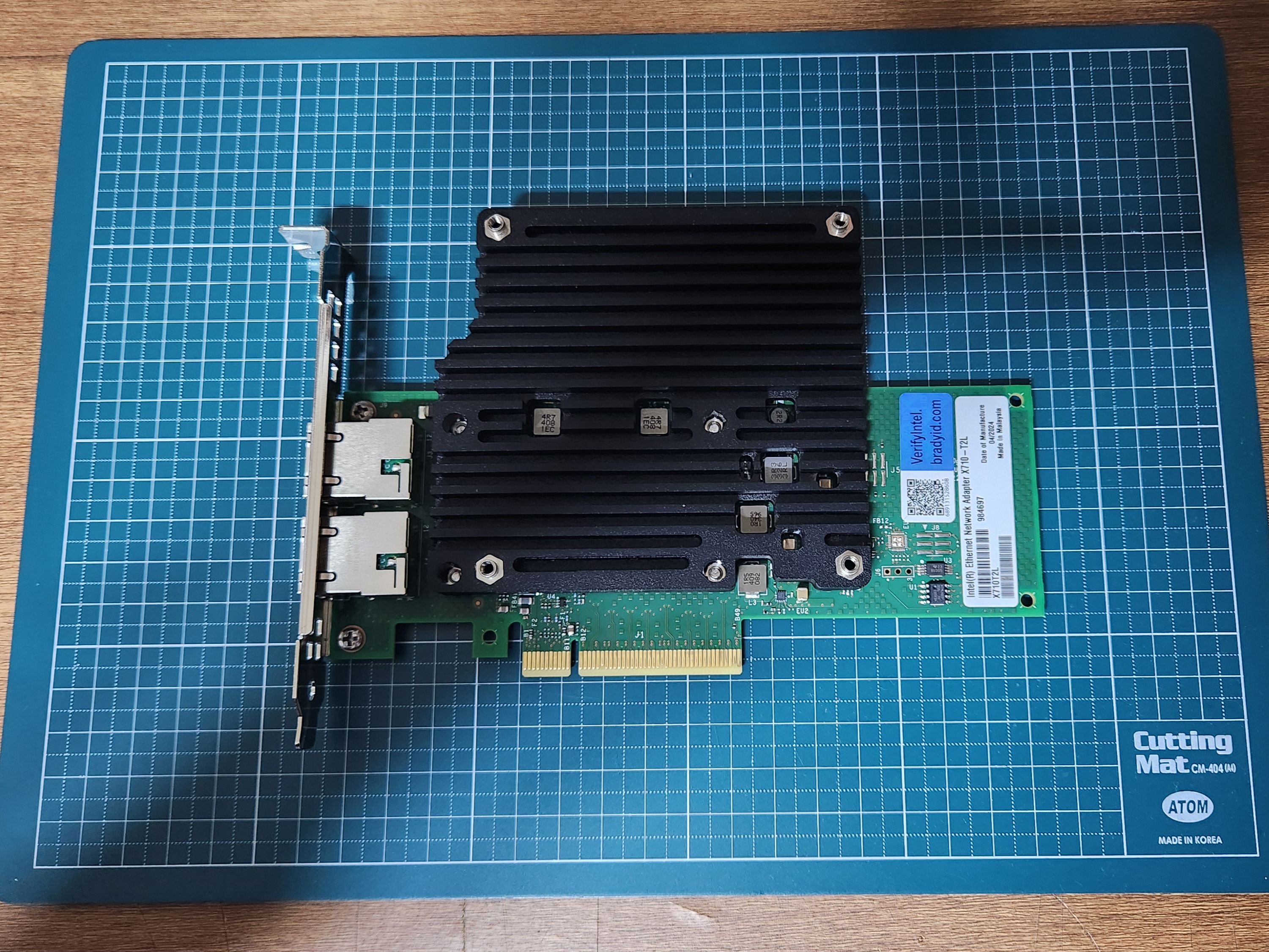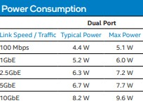 위 제품은 인텔의 10기가비트 랜카드인 X710-T2L로, 최대 대역폭으로 사용 시 10와트에 달하는 전력을 소비하며, 이는 PCIe 5.0 SSD의 전력 소모량에 준합니다.