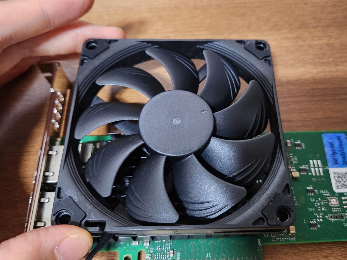 실제로 QNAP 사에서 제공하는 10G2T-X710 제품의 경우 40 mm 팬이 장착되어 있고, 기존 방열판을 가공하여 40 mm 팬을 장착한 사례도 있으며, 시스템 팬으로 충분한 냉각 성능을 확보할 수 없는 위치에 발열원이 있는 경우 그 위치에 팬을 장착하는 시도는 찾아볼 필요가 없을 정도로 많습니다.
